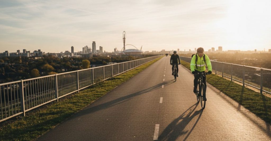 For something slightly less known, connect from the Olympic Park towards the Greenway. Built along a raised sewer embankment, this path offers long, uninterrupted stretches and wide views across East London. It’s not the most picturesque route at first glance, but there’s something freeing about the open horizon and steady gradient. It’s popular with commuters and fitness riders who want consistent pacing without frequent stops. From Lea Bridge Road, you can create a loop that incorporates Hackney Marshes, the Olympic Park, and part of the Greenway before circling back. It’s a solid option if you’re training or simply want a change of scenery.