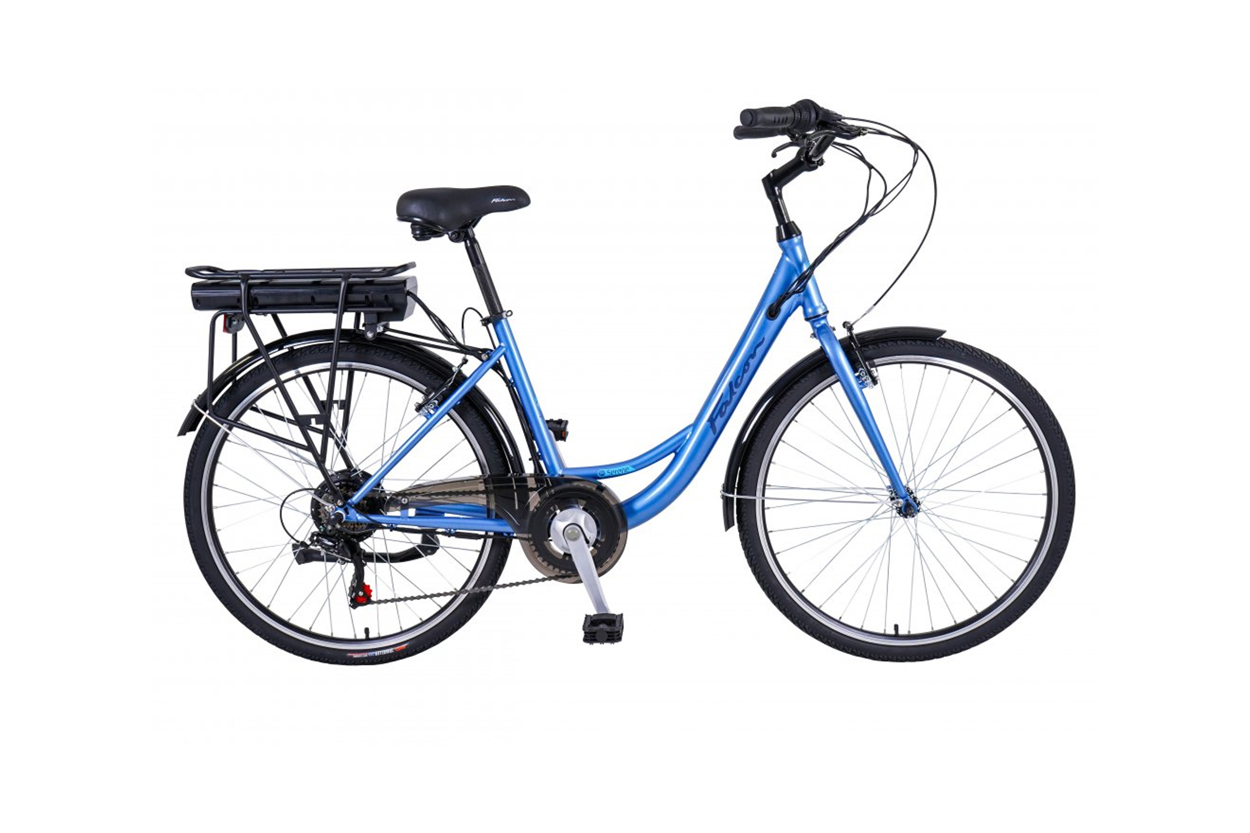 The Falcon Serene truly lives up to it’s name thanks to it’s large capacity 360WH battery power, that’ll keep you gliding along with ease for upto 45km. Not only does the rear carrier mounted battery offer more power, but also it allows more freedom for us to develop a more standard frame gemoetry – meaning it looks less like an ebike than some others. The low step comfort frame is ideal for ladies or gents and with easy adjusting saddle/handlebar it’ll suit anyone up to approx 6ft.