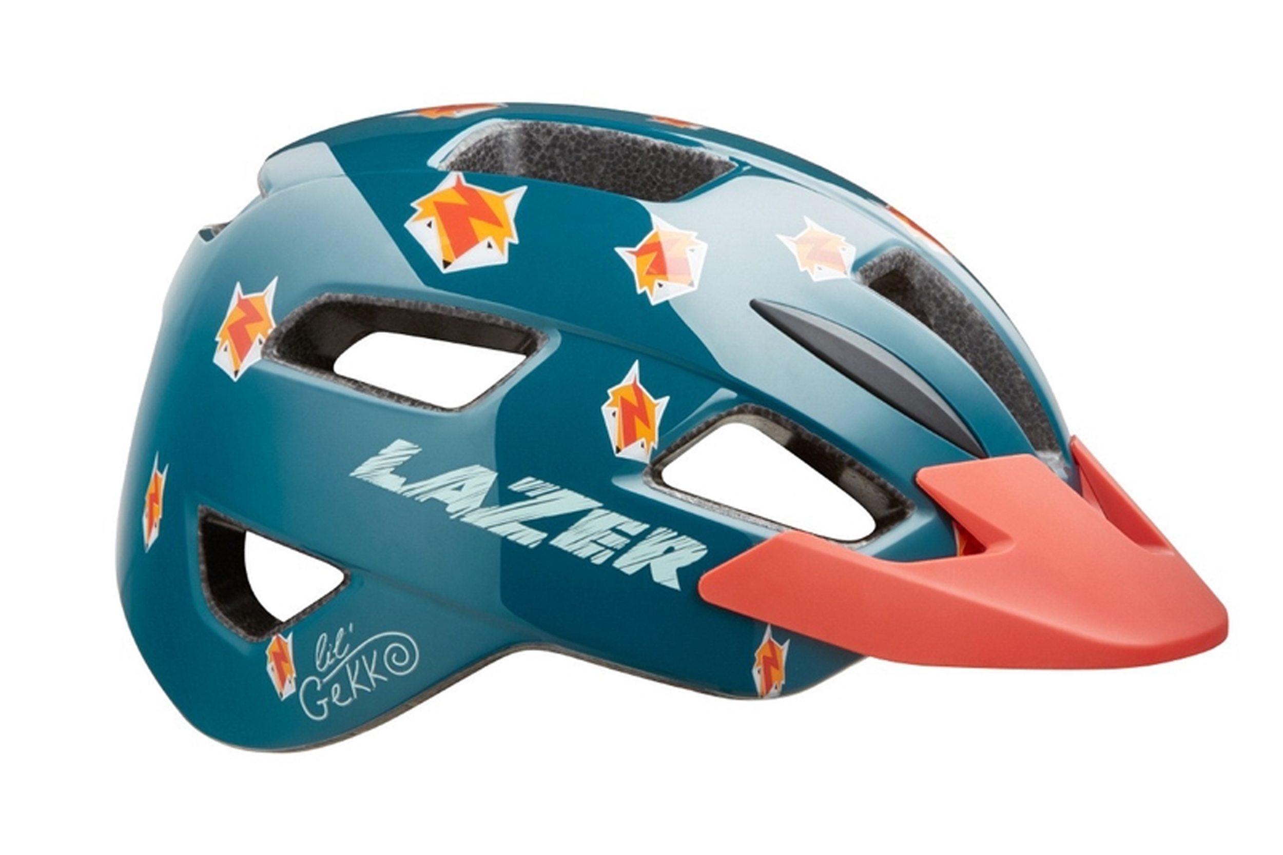 Lazer Lil Gekko Fox Helmet, the next generation of kid’s helmets from Lazer! Drop down side and rear protection keeps little ones safe as they explore the world by bike. A stylish integrated peak looks great and keeps sun out of the eyes and off the face. The Lazer Autofit® Retention System automatically adjusts to the riders’ head making the helmet quick and easy to fit, just put it on the head and let the Autofit work its magic. Plenty of vents ensure the helmet interior stays cool and comfortable.