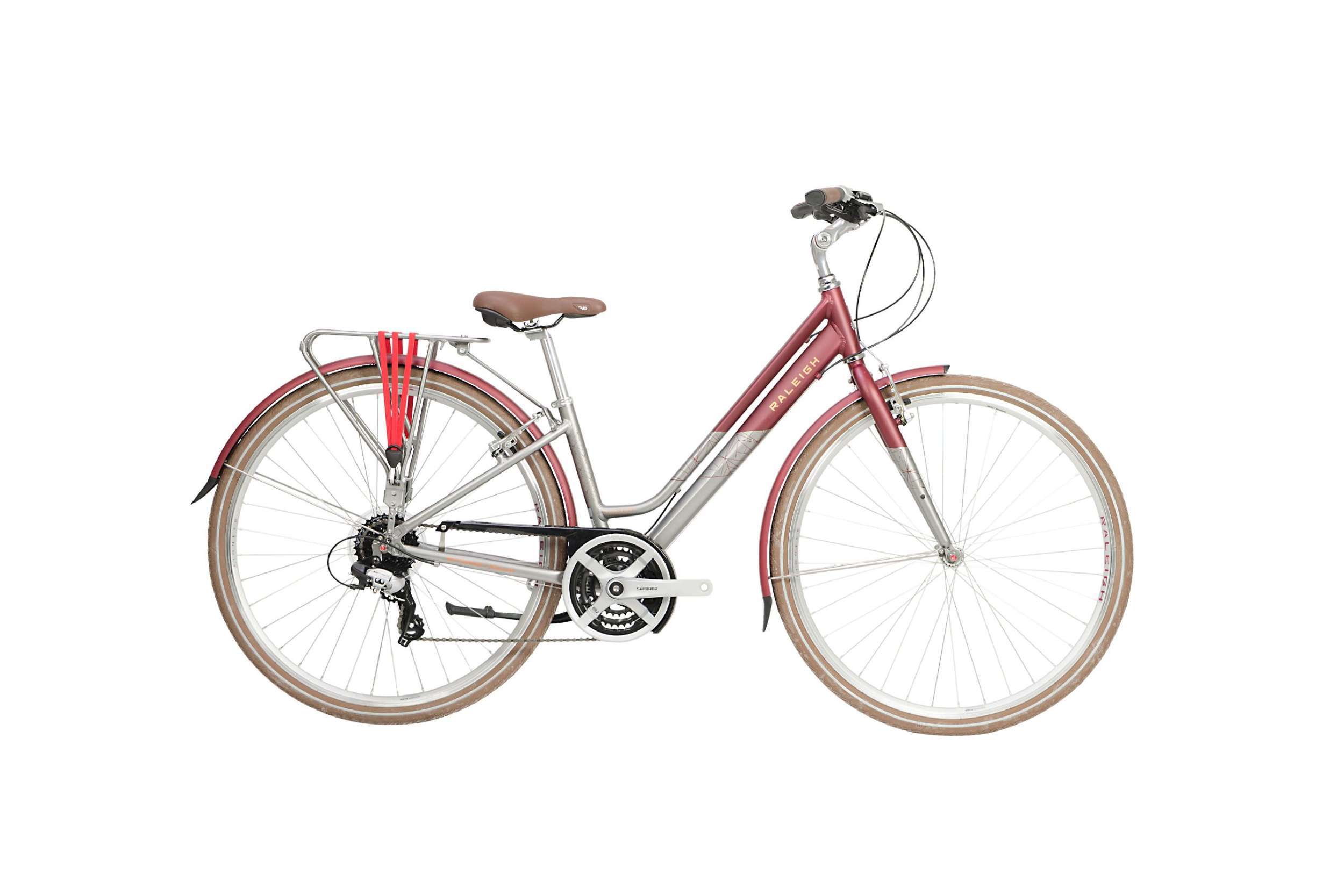 A 24-speed Shimano drivetrain provides smooth shifting over a wide range of gears, suitable for climbing steep hills and fast descents, with powerful V-brakes stopping you when needed. The stylish, high quality finish frame is further enhanced by a comfortable Selle Royal Rio Plus saddle in antique brown, incorporating royal gel.